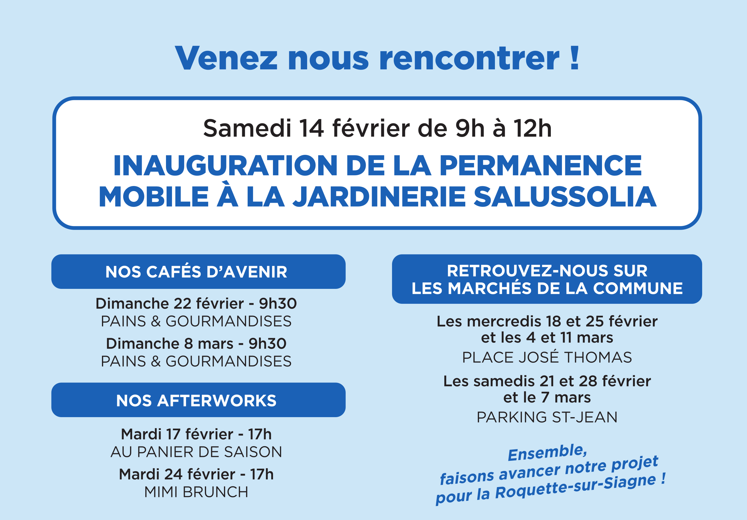 La Roquette-sur-Siagne, permanence mobile, marché du village, marché Saint-Jean, jardinerie Salussolia, engagement local, proximité, échanges citoyens, vie communale, équipe terrain, élections municipales 2026.
